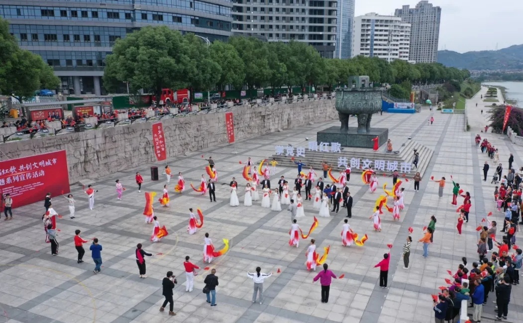 文明風(fēng) 10月25日訊 (通訊員 夏巖緣)紅歌如潮頌黨恩,群情似海助創(chuàng)城。10月24日,一場(chǎng)以“學(xué)黨史 唱紅歌 共創(chuàng)文明城市”為主題的大型快閃活動(dòng)在福鼎市桐山溪畔震撼上演。700多名福鼎“弄潮兒”用自己獨(dú)特的方式,共同唱響愛(ài)國(guó)頌歌,將桐山溪畔變成了一片激情涌動(dòng)的歌舞海洋。