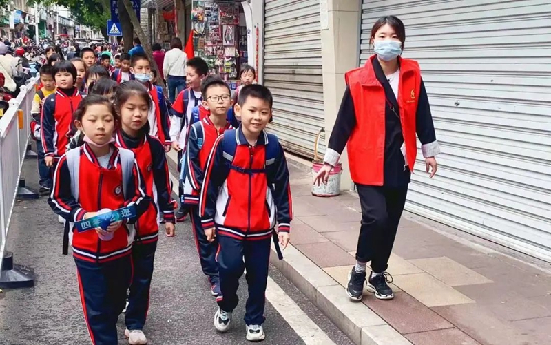 家長志愿者疏導(dǎo)學(xué)生,保證學(xué)生有序通行 南平實(shí)驗(yàn)小學(xué)供圖