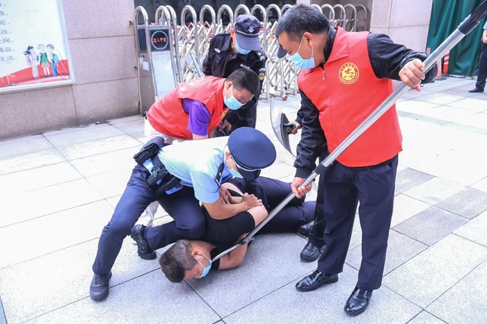 9月30日上午10時許,華僑中學(xué)門衛(wèi)室的“一鍵報警”設(shè)備發(fā)出了急促的響聲。“學(xué)校門口有突發(fā)警情,迅速集合!”在收到民警的指令后,“近鄰護(hù)校隊”的志愿者迅速放下手頭工作、拿上裝備,不到3分鐘便到達(dá)學(xué)校門口集結(jié)完畢。與此同時,派出所處突力量也整裝到場,在場人員臨危不亂地按照應(yīng)急預(yù)案,手持盾牌、鋼叉等將歹徒團(tuán)團(tuán)圍住,經(jīng)過一番周旋、交涉后成功將歹徒制伏并帶離現(xiàn)場。