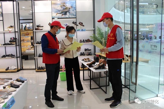 志愿者們走進(jìn)德化萬達(dá)廣場及其內(nèi)部商鋪店面,向群眾宣傳了移風(fēng)易俗相關(guān)知識并分發(fā)了移風(fēng)易俗宣傳資料,倡導(dǎo)群眾強(qiáng)化主人翁責(zé)任,積極改變傳統(tǒng)觀念,破陳規(guī)、除陋習(xí),倡文明、樹新風(fēng),為移風(fēng)易俗深入開展助力加持。