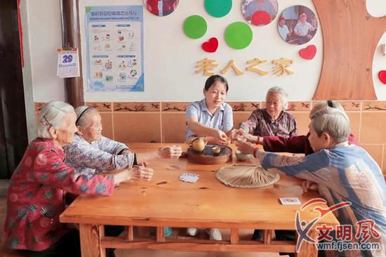 老人們與黃小梅一起泡茶話仙(翔安區(qū)委文明辦供圖)