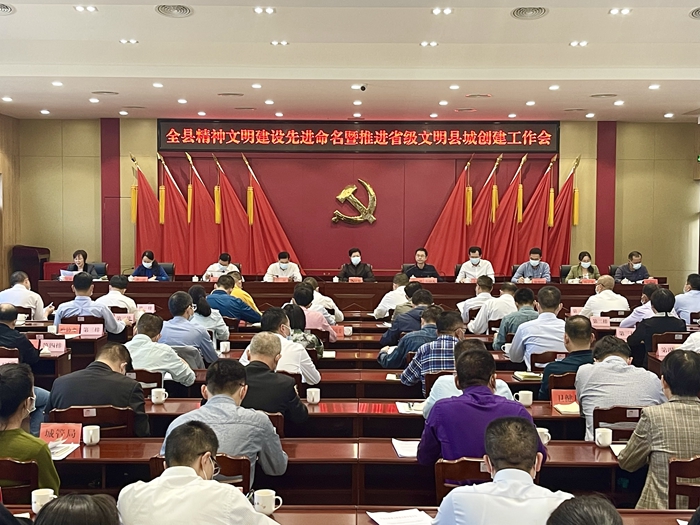 副縣長吳映紅宣讀命名決定,縣委常委、宣傳部長李真部署省級文明縣城創(chuàng)建工作。