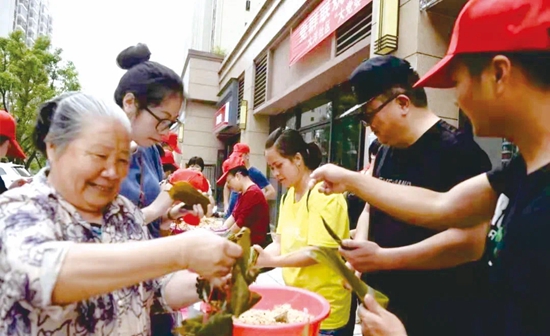 社區(qū)端午包粽子活動。大洋社區(qū) 供圖