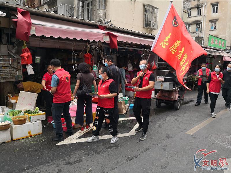志愿者走入轄區(qū)人員密集的文塔菜市場(chǎng)、超市門口、熱門商鋪、背街小巷等地發(fā)放宣傳材料。西邊社區(qū)供圖