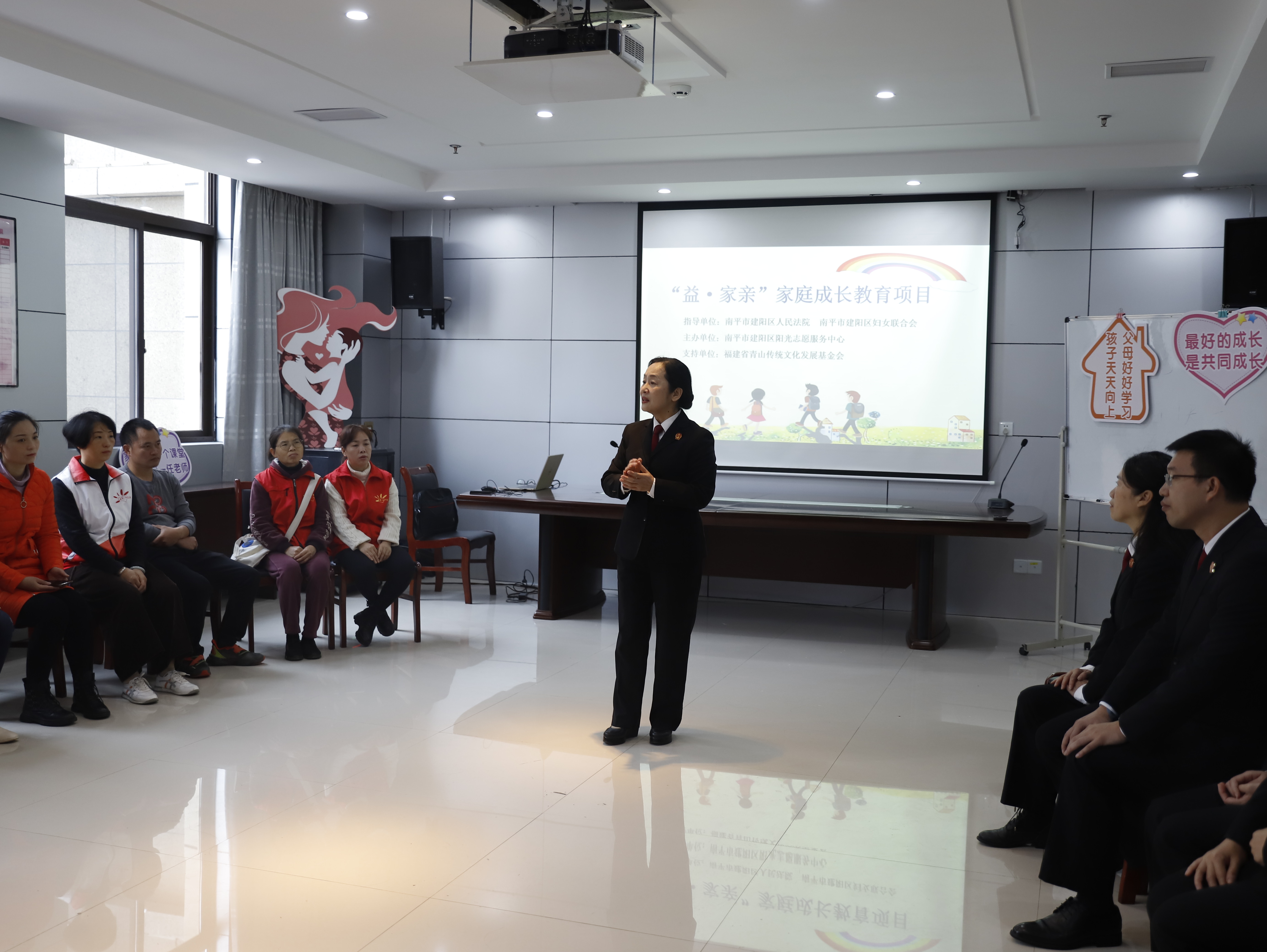 文明風(fēng)11月23日訊(通訊員黃志宏 梁佳鶴 劉紅)為貫徹落實習(xí)近平總書記青少年“扣好人生第一粒扣子”重要講話精神,廣泛宣傳普及《中華人民共和國家庭教育促進法》,推動家庭教育健康發(fā)展,營造全社會都來關(guān)心愛護未成年人健康成長的濃厚氛圍,11月20日“世界兒童日”到來之際,由建陽區(qū)法院、區(qū)婦聯(lián)指導(dǎo),區(qū)陽光志愿服務(wù)中心主辦,福建省青山傳統(tǒng)文化發(fā)展基金會支持的“益·家親”家庭成長教育項目在建陽啟動。
