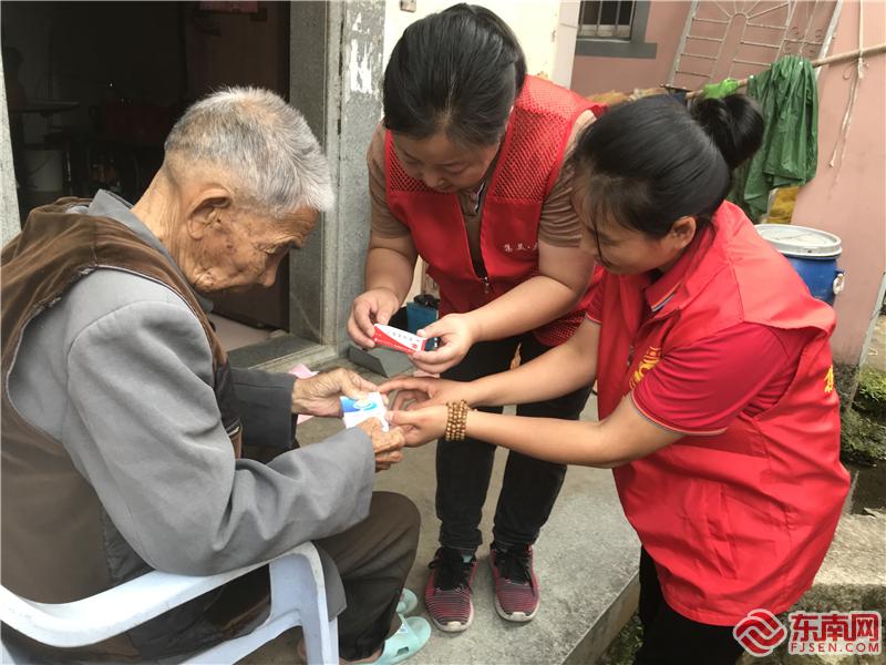 志愿者下社區(qū)服務(wù)居民(黃地村新時(shí)代文明實(shí)踐站供圖)
