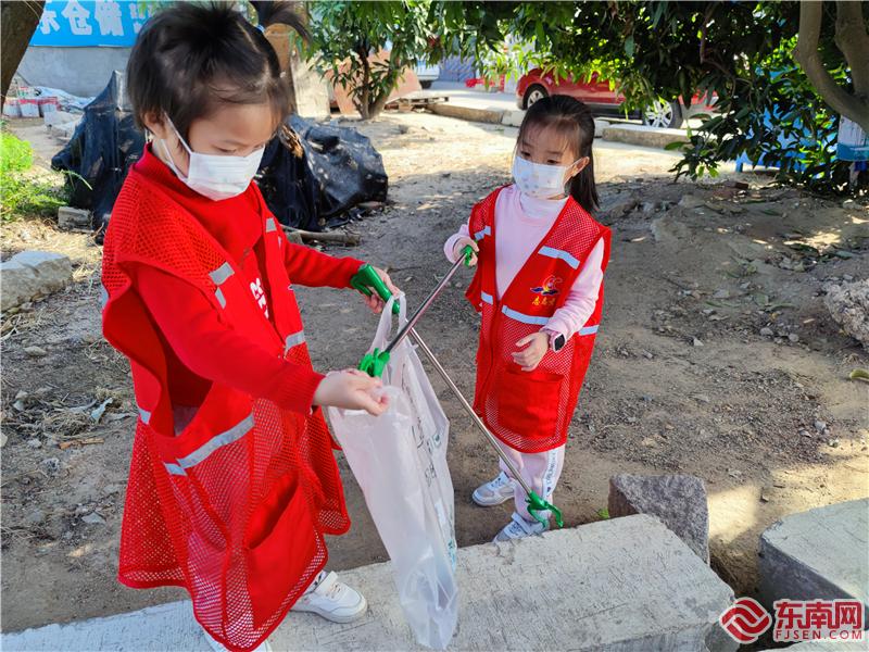 小志愿者撿拾垃圾(李銀珠 攝)