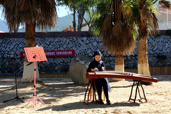 馬甲中心小學四年級學生佘芷妍在新時代文明實踐公園內(nèi)彈奏古箏。薛逸群 供圖