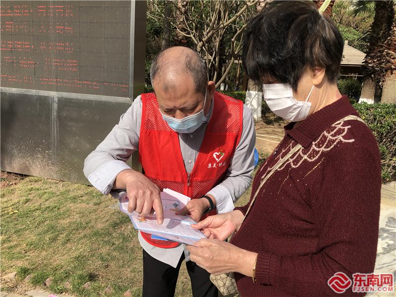 志愿者耐心地向居民講解宣傳文明創(chuàng)城基本知識(余麗清 攝)