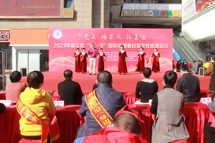 當天上午,熱情洋溢的開場舞《中國喜洋洋》拉開了活動序幕,現場,張茜華為活動致辭,并向志愿者致以節(jié)日的問候。隨后,方言快板唱《以史為鑒啟新程》、舞蹈《沒有共產黨就沒有新中國》、情景劇《我不是騙子》、歌伴舞《國家》等富有時代特色、群眾喜聞樂見的節(jié)目輪番上演,引得現場陣陣掌聲。