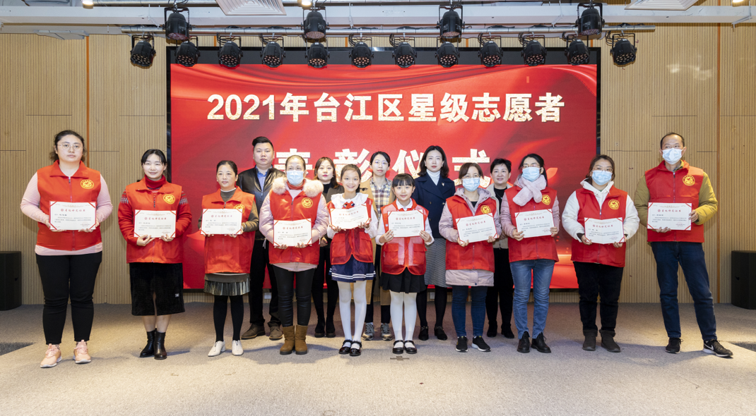 2021年度臺(tái)江區(qū)一星級(jí)、二星級(jí)、三星級(jí)志愿者代表合影(臺(tái)江區(qū)委文明辦供圖)