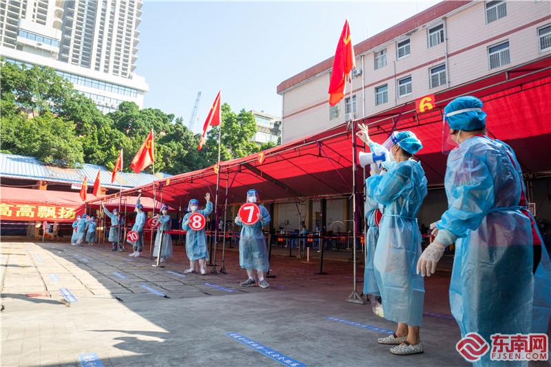 場(chǎng)地,就是擺在他們面前的首個(gè)難題?!拔覀冾A(yù)估檢測(cè)人數(shù)會(huì)達(dá)到每輪次16000人次,那就必須要有14臺(tái)機(jī)器才能輪轉(zhuǎn)得開,所以找好場(chǎng)地很重要”,張惠霞說,廈禾社區(qū)是老城區(qū)的繁華地帶,人口密度很大,但是高樓多,空地少。為了尋找合適的場(chǎng)地,社區(qū)工作人員頂著時(shí)下35℃的高溫,在轄區(qū)各處奔走。最終在多方力量的幫助下,將角濱汽修廠定為廈禾社區(qū)核酸采樣點(diǎn)。找到場(chǎng)地后,社區(qū)工作人員們又和思明環(huán)衛(wèi)保潔人員們一起,清理油污、消殺平整場(chǎng)地、接電續(xù)水,終于趕在天亮前,為首輪核酸檢測(cè)工作做好了周全準(zhǔn)備。