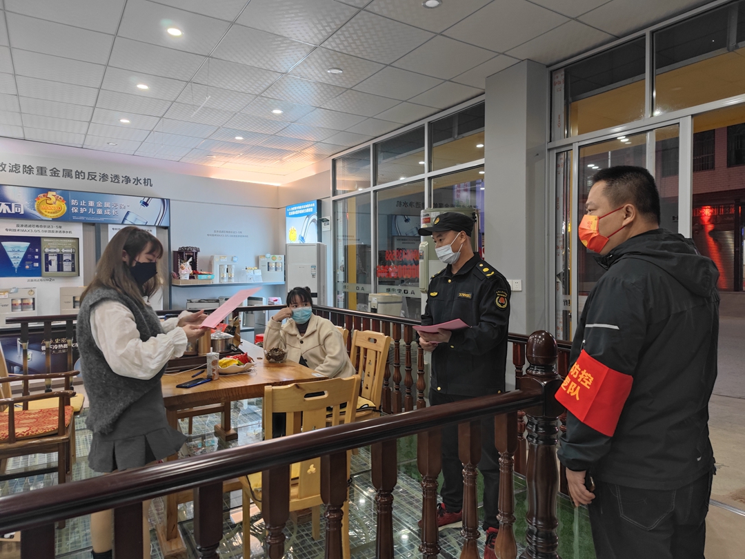 志愿者們深入全鎮(zhèn)各商超、餐飲單位、藥店、娛樂場(chǎng)所、酒店等公共場(chǎng)所,宣傳疫情防控知識(shí),分發(fā)疫情防控倡議書,勸導(dǎo)商家、業(yè)主嚴(yán)格落實(shí)“三碼聯(lián)查(即查健康碼、行程碼、疫苗接種標(biāo)識(shí))、測(cè)溫、戴口罩、不聚集”,以及清潔、消毒、通風(fēng)換氣等防控措施;勸導(dǎo)行人落實(shí)疫情防控措施,不聚集,出門佩戴口罩。