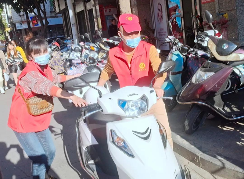 志愿者們積極參與整理不規(guī)范停車