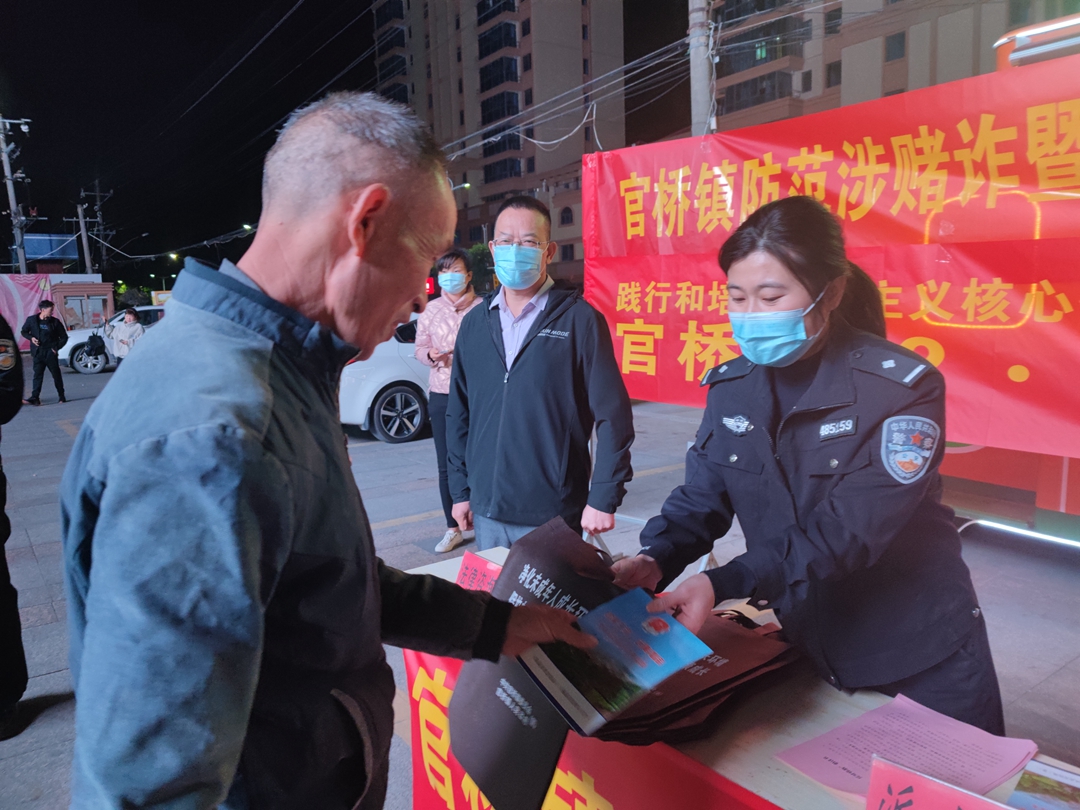今年12月5日是第36個(gè)國(guó)際志愿者日,為進(jìn)一步深化“我為社會(huì)做好事”主題活動(dòng),在全社會(huì)營(yíng)造“我為人人,人人為我”的志愿服務(wù)濃厚氛圍,12月2日晚上,官橋鎮(zhèn)組織志愿者在潤(rùn)豐商業(yè)廣場(chǎng)開展防范涉賭詐、掃黑除惡、禁毒普法和社會(huì)主義核心價(jià)值觀宣傳活動(dòng)。