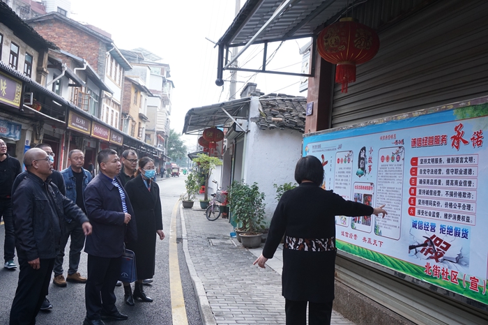 文明風(fēng)12月17日訊(通訊員 林凡琪)12月15日下午,第四批福建省“誠信經(jīng)營示范街區(qū)”調(diào)研組來到連城縣北大中路開展調(diào)研工作。調(diào)研組通過隨機走訪、實地察看、現(xiàn)場詢問、查閱資料等方式開展調(diào)研。市、縣委文明辦,市、縣市場監(jiān)督管理局相關(guān)領(lǐng)導(dǎo)陪同調(diào)研。