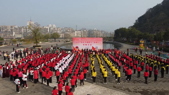 活動現(xiàn)場,600余名巾幗紅志愿者通過集體手勢舞《聽我說謝謝你》向市民的愛心善舉表達感謝。