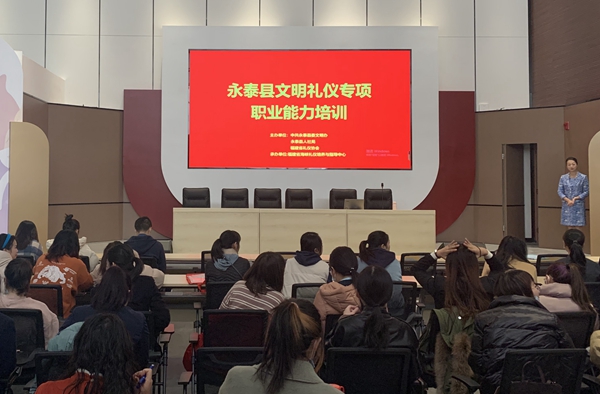 永泰縣開(kāi)展文明禮儀專(zhuān)項(xiàng)職業(yè)能力培訓(xùn)。永泰縣委文明辦供圖