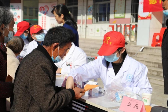 活動現(xiàn)場,縣醫(yī)院醫(yī)務(wù)人員一邊為群眾科普健康知識,免費(fèi)測量血壓、血糖,一邊詳細(xì)詢問他們的身體狀況,答疑解難,并免費(fèi)發(fā)放藥品,活動井然有序,現(xiàn)場滿是濃濃的溫情。