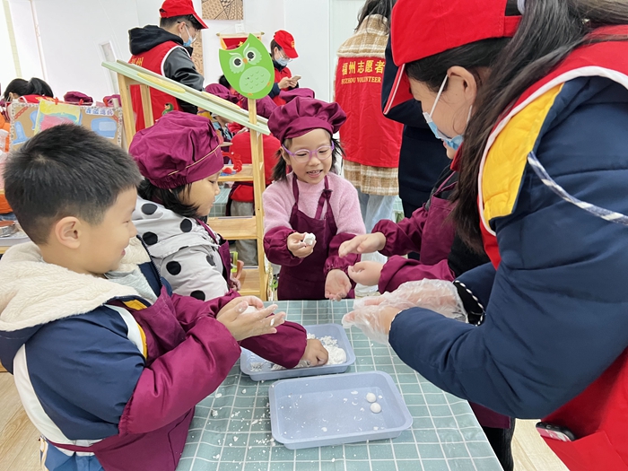鼓樓區(qū)鳳儀社區(qū)黨委開展“初心照未來 永遠(yuǎn)跟黨走”慶冬至活動(dòng),現(xiàn)場(chǎng)教小朋友動(dòng)手制作傳統(tǒng)美食湯圓。(鼓樓區(qū)委文明辦供圖)