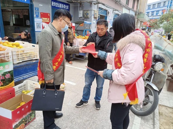 洋里司法所志愿者發(fā)放宣傳材料。閩侯縣委文明辦供圖