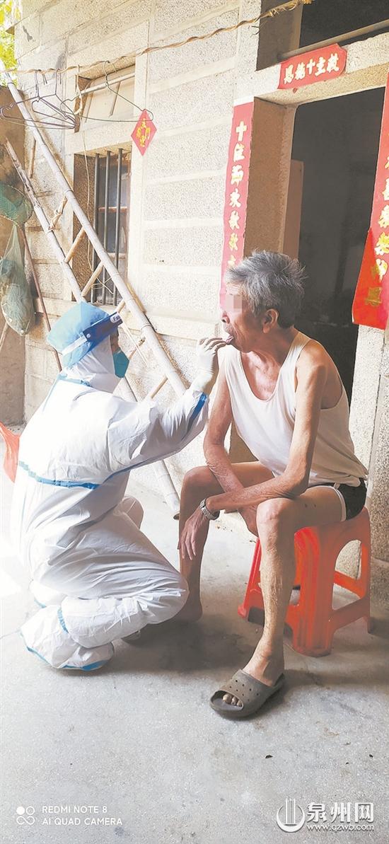 一院護(hù)士莊阿瓊回泉港老家抗疫,入戶為鄰居采集核酸。