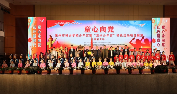 文明風12月29日訊 12月24日,2021年泉州市城鄉(xiāng)學校少年宮暨“復興少年宮”特色活動項目展演活動(南安專場)在南安梅山鎮(zhèn)國專禮堂精彩上演,來自12所鄉(xiāng)鎮(zhèn)小學少年宮的孩子們帶來了13個傳統(tǒng)文化特色節(jié)目。