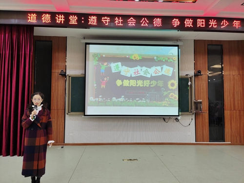 文明風(fēng)12月29日訊(通訊員 江家群)為提高學(xué)生的公德意識和自我約束能力,增強學(xué)生的社會責(zé)任感,維護公共秩序。近日,南平實驗小學(xué)文體校區(qū)開展了主題為“遵守社會公德,爭做陽光少年”道德講堂活動。本期道德講堂由三年段段長江老師主講,為三年段學(xué)生們呈現(xiàn)了一堂精彩的主題講座。
