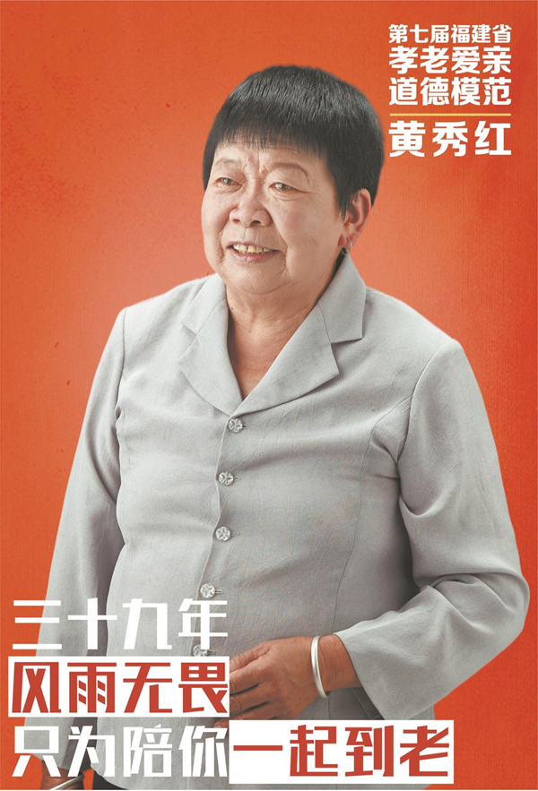 黃秀紅,女,漢族,1947年12月生,福建省泉州市德化縣龍潯鎮(zhèn)英山村村民。黃秀紅36歲那年,丈夫李勝利因中風(fēng)癱瘓在床,從此她獨(dú)自挑起了家庭的重?fù)?dān),照顧丈夫起居,并養(yǎng)育6個孩子長大成人,已經(jīng)75歲的她用幾十載的光陰,詮釋最樸素真摯的愛情和親情。
