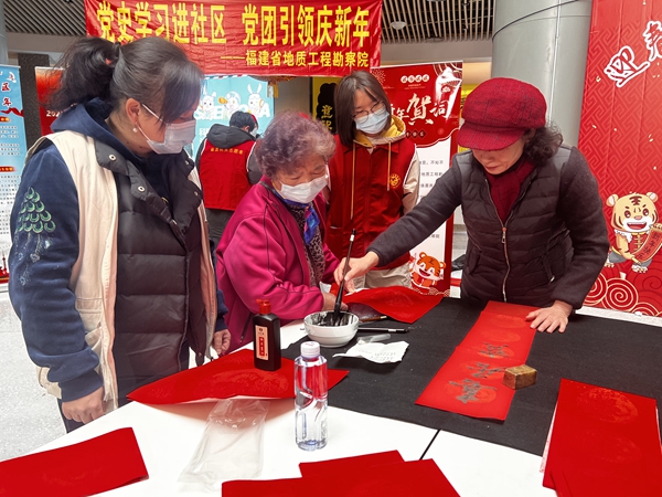 文明風(fēng)1月17日訊 1月12日,由鼓樓區(qū)新時(shí)代文明實(shí)踐中心、共青團(tuán)鼓樓區(qū)委員會(huì)、洪山鎮(zhèn)新時(shí)代文明實(shí)踐所、洪山鎮(zhèn)怡山社區(qū)新時(shí)代文明實(shí)踐站、福建省地質(zhì)工程勘察院、福建省環(huán)保志愿者協(xié)會(huì)等單位共同聯(lián)辦的“迎春送福添年味 情暖鄰里賀新年”新春志愿活動(dòng)在福大怡山青年創(chuàng)新創(chuàng)業(yè)中心舉行。
