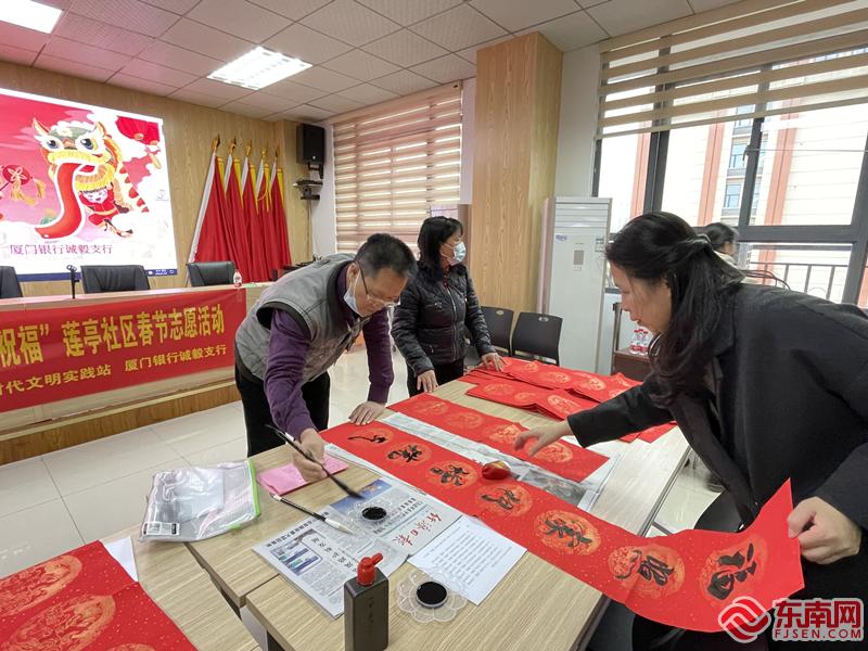 文明風(fēng)1月17日訊(黃好)臨近春節(jié),為引導(dǎo)和動員廣大志愿者送溫暖、獻(xiàn)愛心,日前,廈門市集美區(qū)蓮?fù)ど鐓^(qū)新時代文明實踐站社工聯(lián)合廈門銀行,邀請轄區(qū)內(nèi)書法老師、居民一起開展“喜迎新春贈春聯(lián)·情暖社區(qū)送祝?!贝汗?jié)志愿活動。