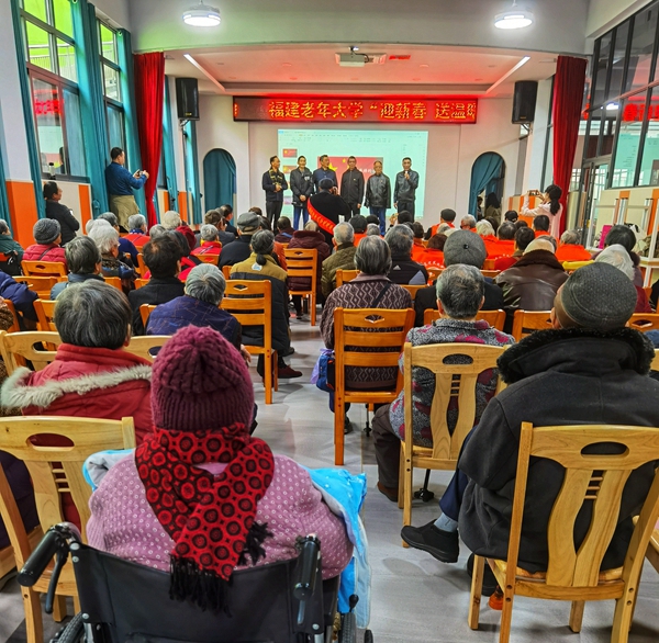 文明風(fēng)1月19日訊 歲末情深,暖意融融。在2022年新春佳節(jié)即將到來(lái)之際,福建老年大學(xué)志愿者來(lái)到福州市西園老年公寓(長(zhǎng)青養(yǎng)老院),開(kāi)展“迎新春、送溫暖、獻(xiàn)愛(ài)心”慰問(wèn)演出和送春聯(lián)活動(dòng),為老人們送去新春的祝福。
