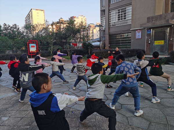 雙虹社區(qū)四點半學校,武術隊志愿者指導孩子們練習。寧化縣委文明辦供圖