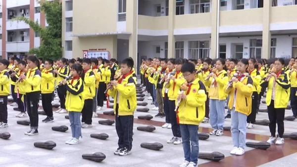 上杭縣蛟洋中心小學(xué)鄉(xiāng)村“復(fù)興少年宮”開設(shè)葫蘆絲吹奏特色課程。上杭縣委文明辦供圖