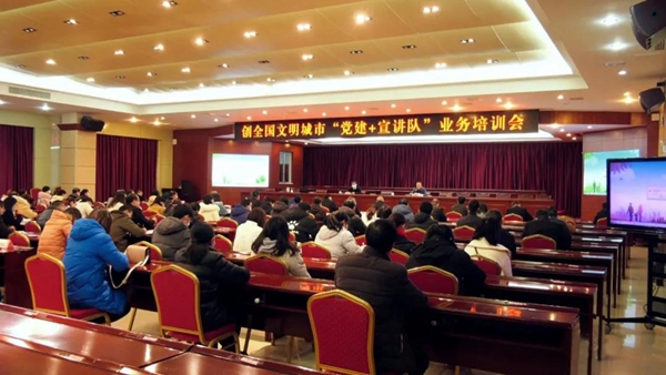 文明風(fēng)1月20日訊 1月14日,長(zhǎng)汀縣舉辦創(chuàng)全國(guó)文明城市“黨建+宣傳隊(duì)”業(yè)務(wù)培訓(xùn)會(huì)。縣領(lǐng)導(dǎo)劉榮海、陳蔚華出席會(huì)議??h委宣傳部、縣教育局黨委、縣委黨史和地方志研究室、縣委黨校等單位宣講隊(duì)員,學(xué)校宣講隊(duì)骨干等100余人參加培訓(xùn)會(huì)。會(huì)議由縣委常委、組織部部長(zhǎng)、縣直機(jī)關(guān)黨工委書記陳蔚華主持。