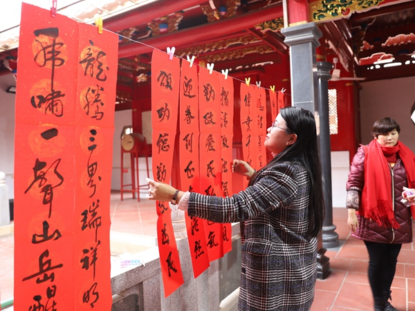 文明風(fēng)1月21日訊(通訊員高靜 陳燕燕)為傳播中華民族優(yōu)秀傳統(tǒng)文化,豐富廣大人民群眾精神文化生活,營(yíng)造歡樂(lè)喜慶、文明祥和的節(jié)日氛圍,1月18日,泉港區(qū)峰尾鎮(zhèn)新時(shí)代文明實(shí)踐所組織文化服務(wù)志愿服務(wù)隊(duì)在峰尾鎮(zhèn)郭厝村宗祠開(kāi)展“福暖泉港 情傳萬(wàn)家”——峰尾鎮(zhèn)2022年迎新年寫春聯(lián)送春聯(lián)慰問(wèn)志愿活動(dòng)。