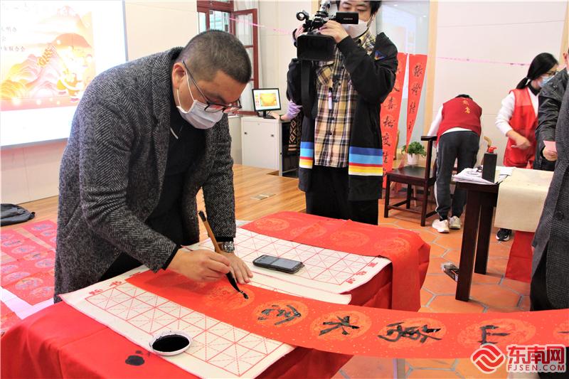 臺(tái)灣書法家現(xiàn)場(chǎng)題寫春聯(lián),送上祝福。東南網(wǎng)記者 李霖 攝