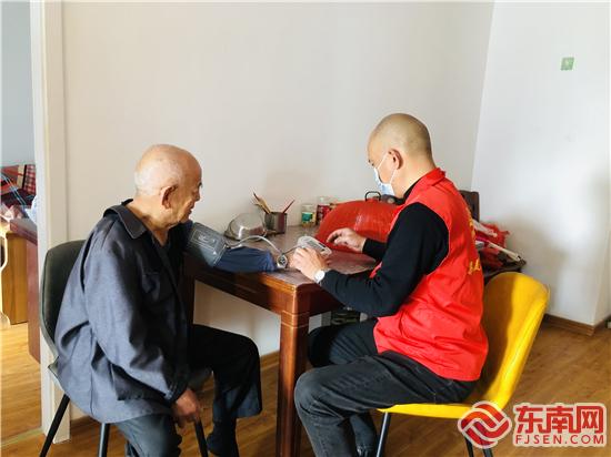入戶(hù)慰問(wèn)居家五保戶(hù)老人,志愿者為老人量血壓(集美區(qū)盧媽媽愛(ài)心隊(duì) 供圖)