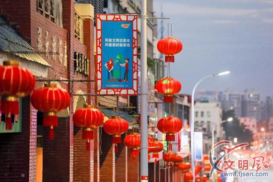 文明風(fēng)1月24日訊(夏菁 童心悅)春節(jié)越來越近,年味愈來愈濃,近日,廈門市翔安區(qū)多條主干道流光溢彩,大紅燈籠高高掛起,“?!蔽幕諊鷿M滿,為市民朋友們營造出濃厚的春節(jié)氣息。