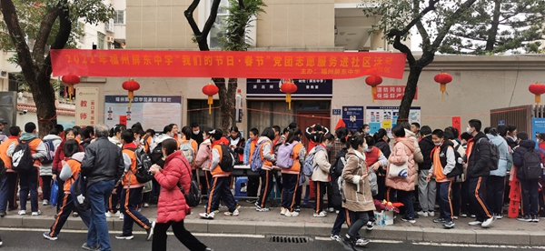 座談會后,一行人走進屏東中學(xué),在屏東中學(xué)師生的介紹中,了解“雙減”政策下,屏東中學(xué)鼓勵學(xué)生成立互助小組,開展一對一幫扶,鼓勵他們要繼續(xù)保持對學(xué)習(xí)和生活熱情,把社會各界的關(guān)愛化為勤奮學(xué)習(xí)、回報社會的強大動力。隨后,與先進學(xué)生代表互動交流,并為其頒發(fā)榮譽證書及助學(xué)金。之后,在鼓樓區(qū)人大代表、福州屏東中學(xué)校長張年雄的帶領(lǐng)下,學(xué)生代表們走進福州第八干休所,提前向老戰(zhàn)士、老黨員送上節(jié)日的祝福。