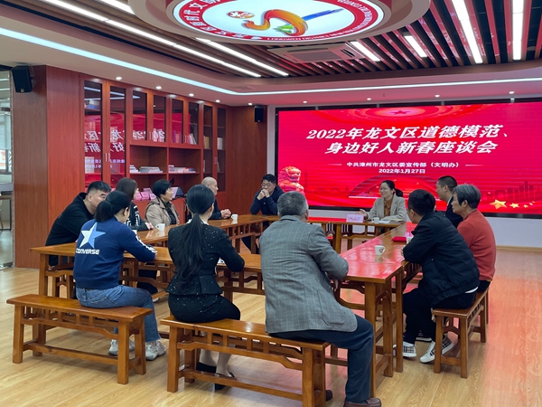 文明風(fēng)1月27日訊 春節(jié)將至,為進(jìn)一步營(yíng)造關(guān)心、學(xué)習(xí)、崇尚、爭(zhēng)當(dāng)?shù)赖履7兜臐夂穹諊?月27日上午,龍文區(qū)委宣傳部(文明辦)在區(qū)新時(shí)代文明實(shí)踐中心召開(kāi)道德模范、身邊好人新春慰問(wèn)座談會(huì),邀請(qǐng)8名中國(guó)好人、福建好人、道德模范代表齊聚一堂,溝通交流思想,共敘好人情懷。