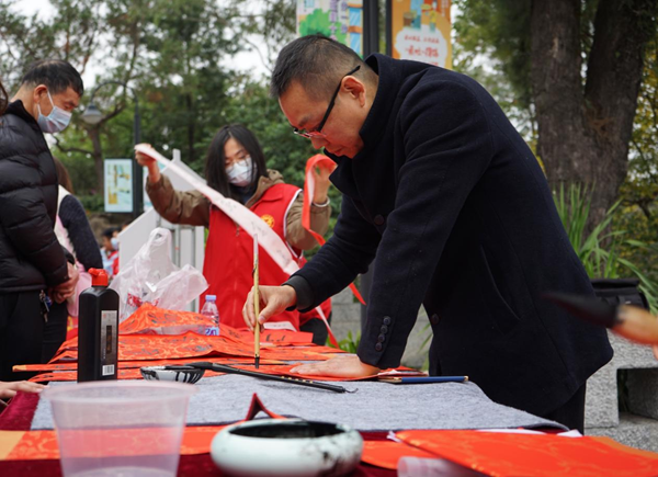 書法志愿者現(xiàn)場(chǎng)書寫春聯(lián) 共青團(tuán)倉(cāng)山區(qū)委員會(huì)供圖