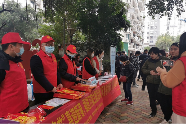 臺江區(qū)春節(jié)期間開展新時代文明實踐進社區(qū)系列活動,圖為志愿者開展文明主題宣傳。(臺江區(qū)委文明辦供圖)