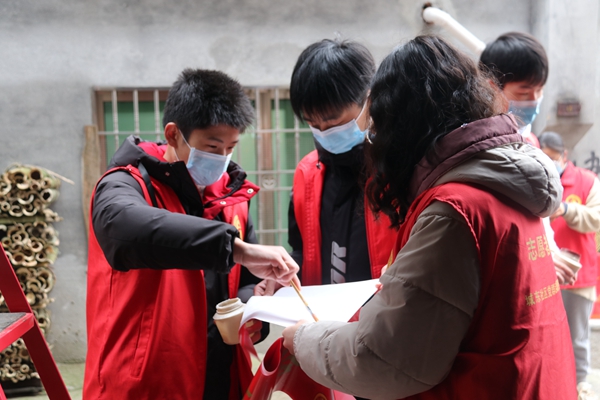 青年志愿者為老人們送去春聯(lián)。陳華盛 攝