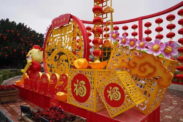 城鄉(xiāng)各地紛紛穿上“?!蔽幕卵b,中國結(jié)、燈籠、燈帶、燈箱等美化、亮化了城區(qū)的每個角落。小城被裝點一新,精心融入“?!睙粼?,在城區(qū)人民路圓池邊設(shè)置“玉虎迎春”,在聯(lián)十一線增添“虎年賀歲”,在龍津溪步行橋新增“狀元帽”。滿城燈籠,滿眼喜慶,群眾紛紛感慨并拍照留念:“太好看了”“太有年味了”“虎年福氣滿”“生活在長泰很幸?!?。長泰這座溫馨小城再度成為打卡“?!钡亍0l(fā)動各村鎮(zhèn)、區(qū)直各單位、中小學(xué)校通過張貼海報、LED屏幕宣傳、制作“福”文化宣傳品等多種形式,大力宣傳“福”文化,營造濃厚氛圍。據(jù)不完全統(tǒng)計,全區(qū)張貼“?!蔽幕麄骱蟆ED滾動播放標(biāo)語、海報近10萬條次,制作宣傳紙杯10萬只。