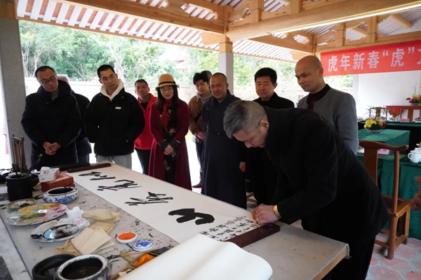 2月5日,涵江區(qū)虎年新春“虎”文化座談會在囊山寺召開,區(qū)委常委、宣傳部部長張茜華帶領區(qū)委宣傳部、區(qū)文旅局等相關部門負責人、民俗專家、書畫藝術家們齊聚一堂,共話“虎”文化,暢談“虎”知識。現(xiàn)場,與會人員立足涵江深厚的歷史文化底蘊和獨特的文旅資源,暢談許多關于“虎”文化的認識,并提出不少好思路、好建議,同時來自區(qū)美術家協(xié)會、區(qū)書法家協(xié)會的書畫名家還在現(xiàn)場激情揮毫,以“虎”為主題創(chuàng)作了畫意精湛的《妙應伏虎圖》以及力透紙背的《似虎奔山》字,寓意虎年倍添干勁、虎虎生威,營造了濃厚的“虎”文化氛圍。(涵江區(qū)委文明辦)