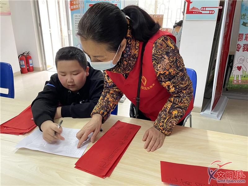 日前,廈門市思明區(qū)僑福社區(qū)依托新時代文明實踐站組織志愿者和轄區(qū)內(nèi)青少年開展“我們的節(jié)日·元宵 小小創(chuàng)作家 書寫燈謎歡樂多”活動。活動中,志愿者黃阿姨向現(xiàn)場的青少年講述了元宵節(jié)的風(fēng)俗習(xí)慣和猜燈謎的由來,激起青少年們的學(xué)習(xí)興趣。隨后,青少年們開動腦筋,集思廣益,在紅紙上一筆一劃寫下趣味燈謎。