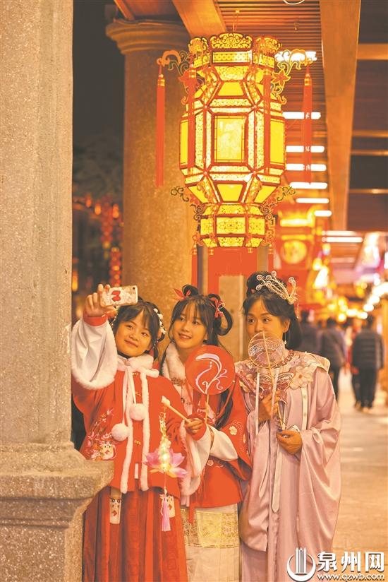 “今天特地來泉州看花燈。”人群中,身穿漢服的拾一和路北十分引人注目。兩人都來自廈門,傍晚趕到泉州后,還沒來得及將行李放到酒店,便匆匆趕到鐘樓“打卡”。拾一告訴記者,這是她們第三次來泉州,在她看來,泉州是一個非常有文化底蘊的城市,她一直很喜歡泉州獨特的人文特色。(記者郭芳蓉 魏曉芳)