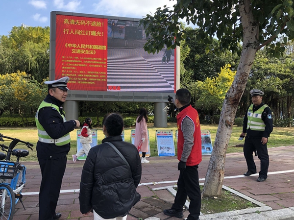 文明風(fēng)2月15日訊 為了持續(xù)深化文明培育、文明實(shí)踐,提升市民文明素質(zhì)和社會(huì)文明程度,建設(shè)幸福之城、文明之城,2月14日,馬尾區(qū)委文明辦、區(qū)交警大隊(duì)、羅星街道和馬尾鎮(zhèn)聯(lián)合在宗棠路魁岐路口和億載金城廣場(chǎng)開(kāi)展文明交通宣傳教育活動(dòng)?,F(xiàn)場(chǎng)的大型戶外 LED屏上循環(huán)播放《高清無(wú)碼不遮臉!行人闖紅燈曝光!》的視頻,對(duì)闖紅燈的行人進(jìn)行曝光,羅星街道和馬尾鎮(zhèn)的社區(qū)志愿者發(fā)放文明交通宣傳單和宣傳品并講解文明交通展板內(nèi)容,交通警察用闖紅燈引發(fā)的交通事故案例教育群眾和外賣(mài)小哥,以此提升交通秩序管理水平。