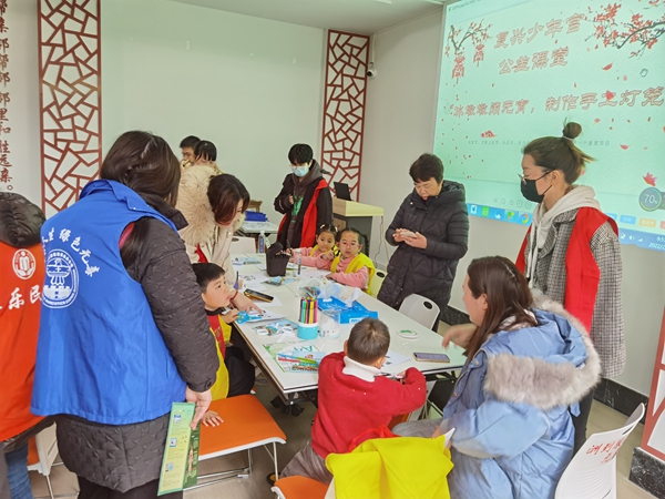志愿者與小朋友一起制作手工燈籠(長樂區(qū)工信局供圖)